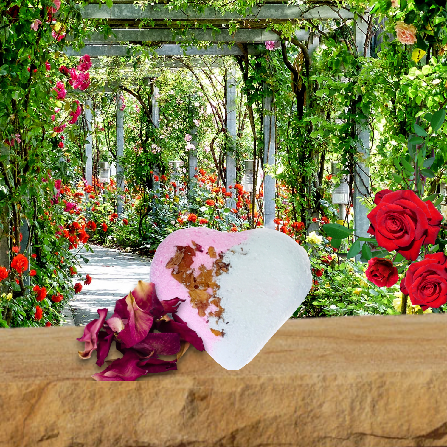 Gentle rose fragrance, rose petals and epsom salts. Our rose bomb is sure to make bathtime feel like your bathing in a queens rose garden.