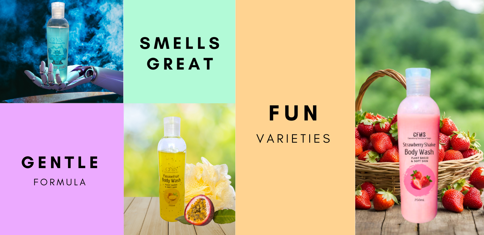Designed to be very natural and gentle, our entire range is made to delight the senses and make shower time fun