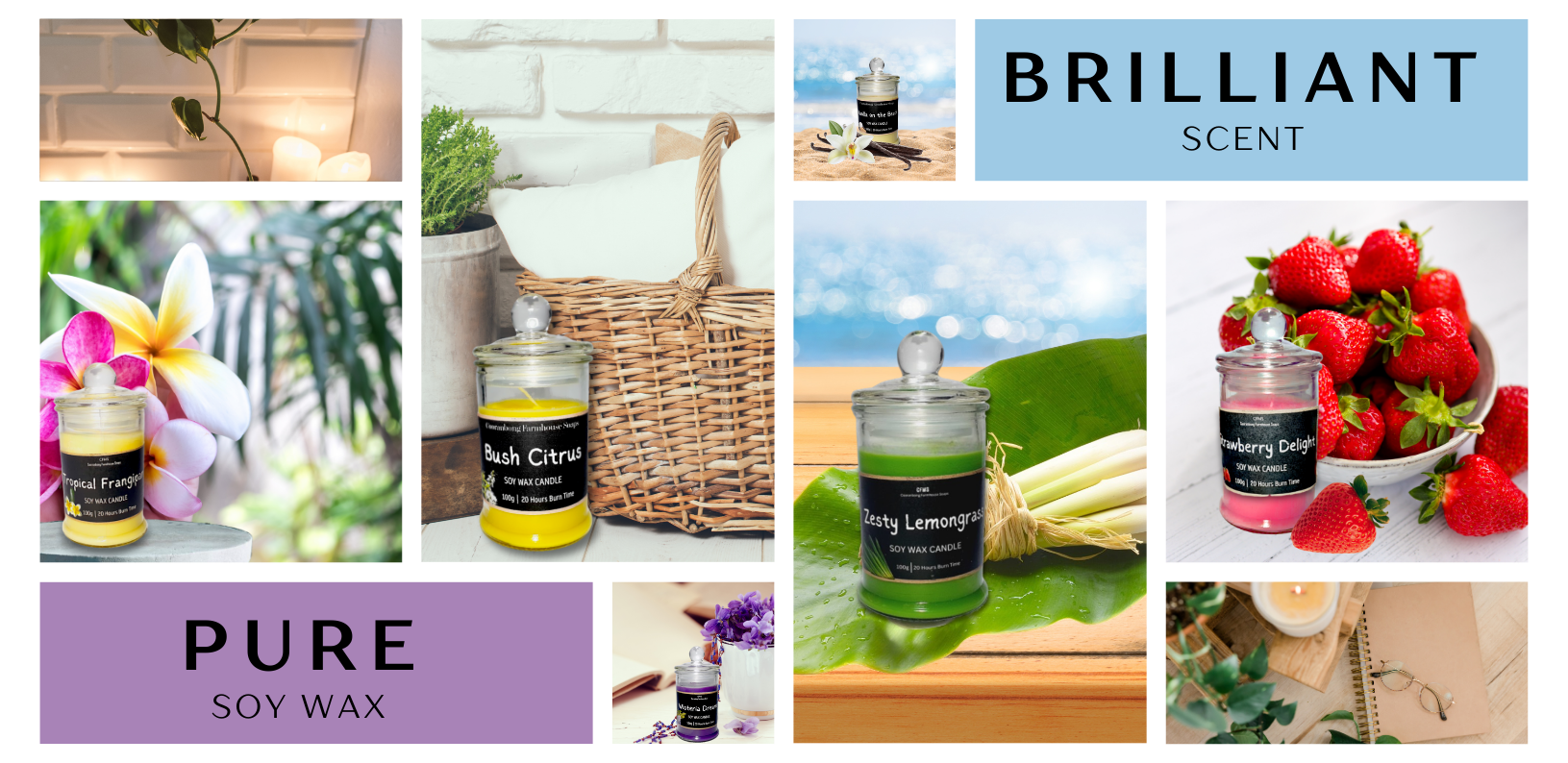 This candle is a perfect mix of citrus notes to remind you of the bush. It uses essential oils, so our smells are as bright as the colour!
