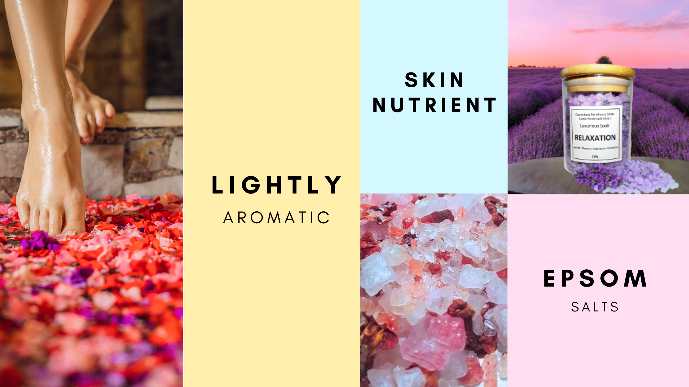 Magnesium bath salts, sea rock salt, Himalayan rock salt are infused with ceremide's and essential oil is the perfect edition to anyone's bath time. This is a wonderful combination for a relaxing bath that will help rehydrate your skin. Our salts are ALL natural, with a low level of essential oil to balance bath time and aroma.