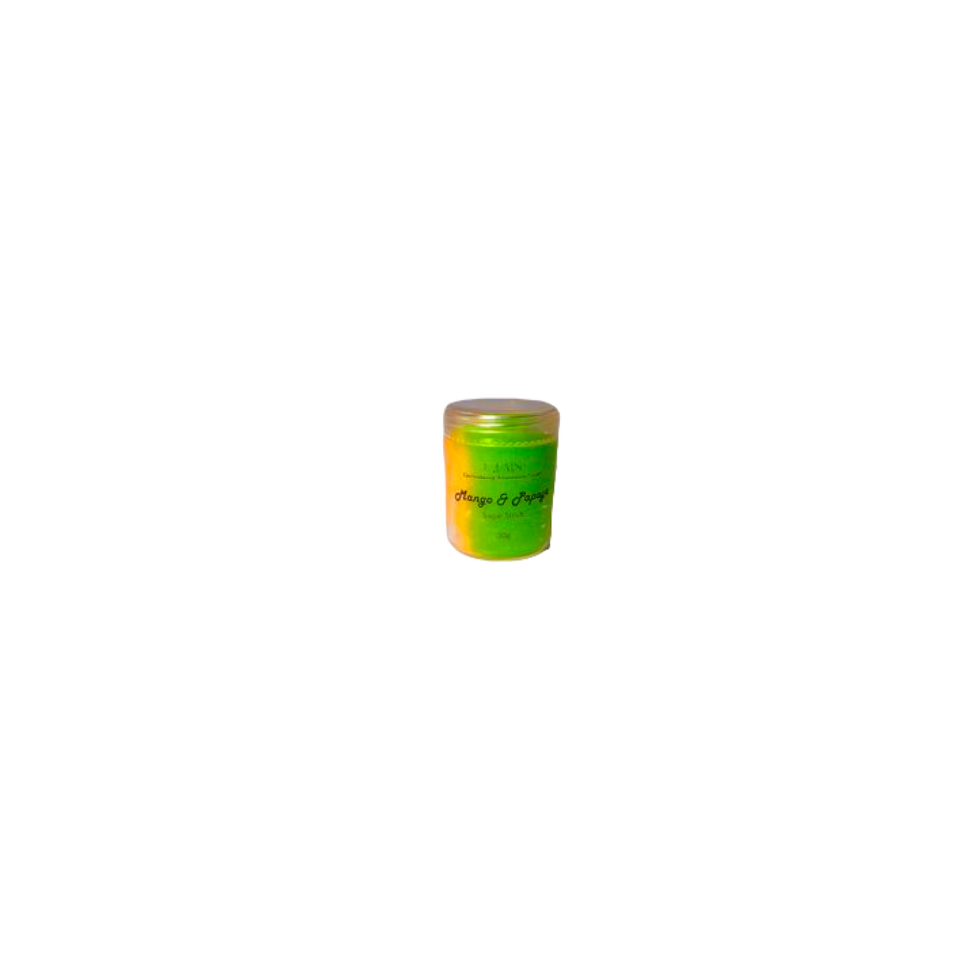 Our mango and papaya sugar scrub has a refreshing mango scent, infused with mango butter which helps to soften the skin and papaya seed oil which is rich in vitamin C, this scrub really elevates the exfoliation experience.